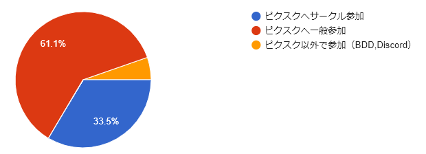 ピクスク以外で参加された方が5.3%(28名)いらっしゃいました。母数を考えると比率としてはそこまで高くはないですが、一定数の方がピクスクに参加しない・できない状況にあることが分かり大変参考になりました。